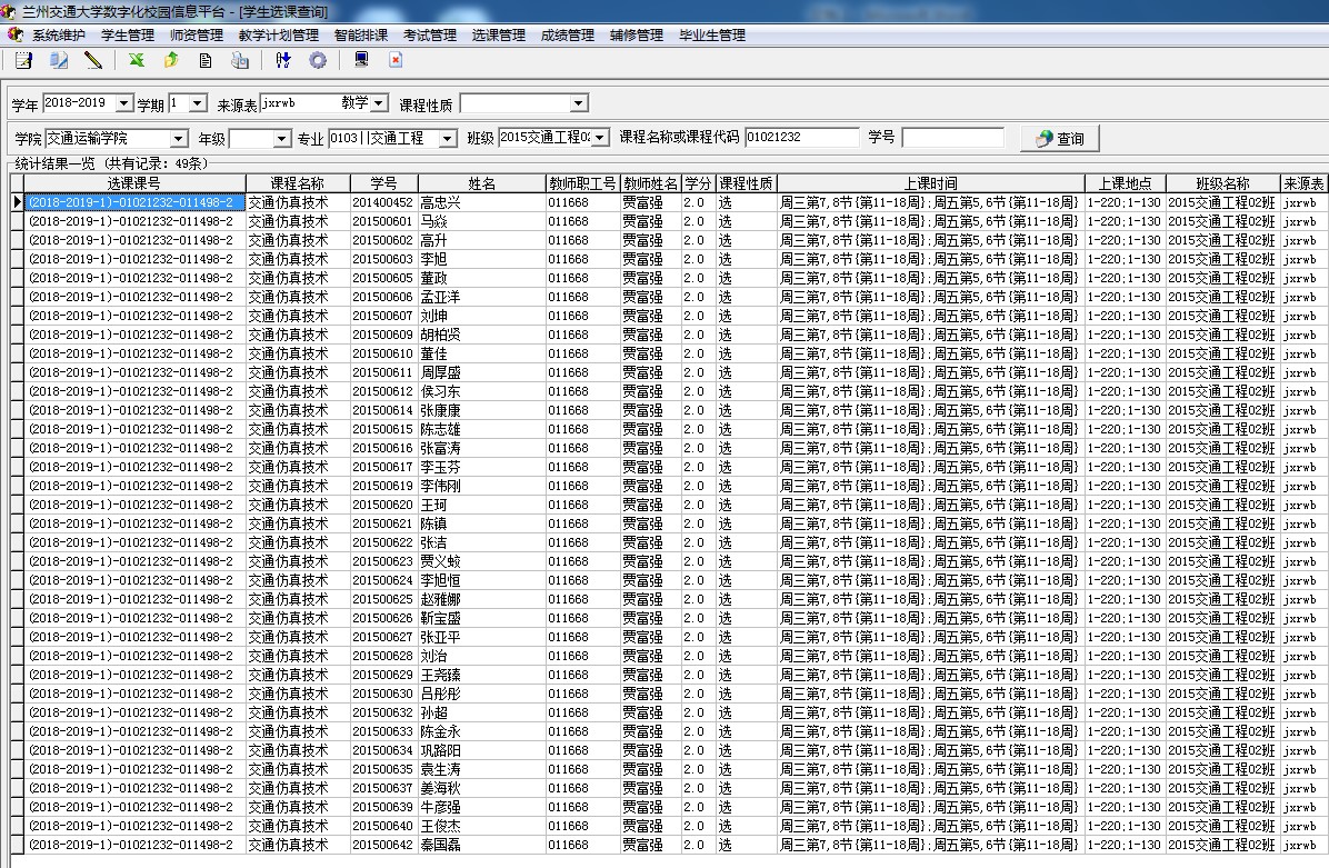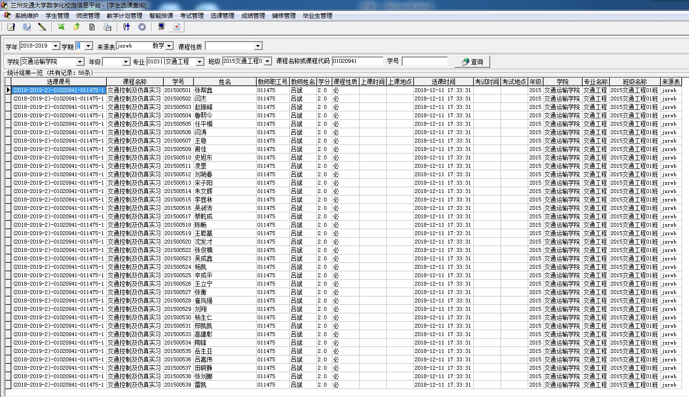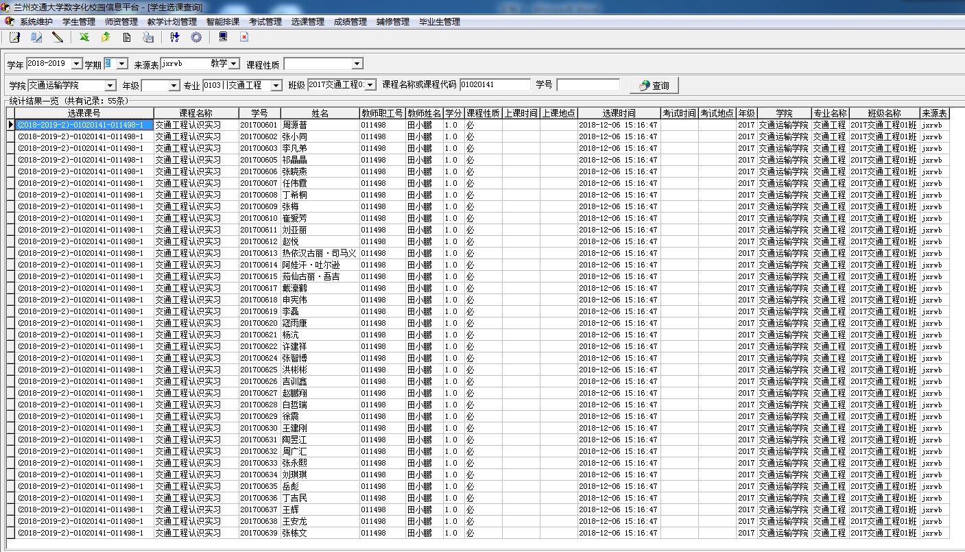 实验课程选课名单